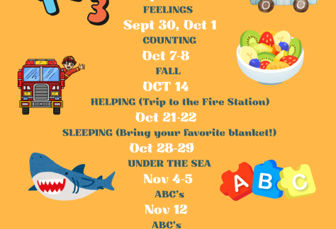 Tuesdays and Wednesdays at 10 am For infants through pre-school age children. Adults are to accompany children. Stories, crafts, and snacks Sept 16th – Dec 3rd Sept 16-17: Good Luck Ice Cream Truck! Sept 23-24: Paddington’s Things I Feel September 30-Oct 1: Counting Creatures ___ OCT 7-8: Fall Parade O , ...LEGO Club3:30 pm - 4:00 pm