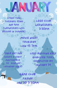 Movie night, Thursday, Jan 15 7PM Story Time, Tuesdays 10AM AND 4PM. Starts Jan 27 ...
