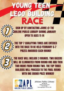 Sign up FOR qualifying RACES by contacting Jamie @ the Abilene Public Library during...